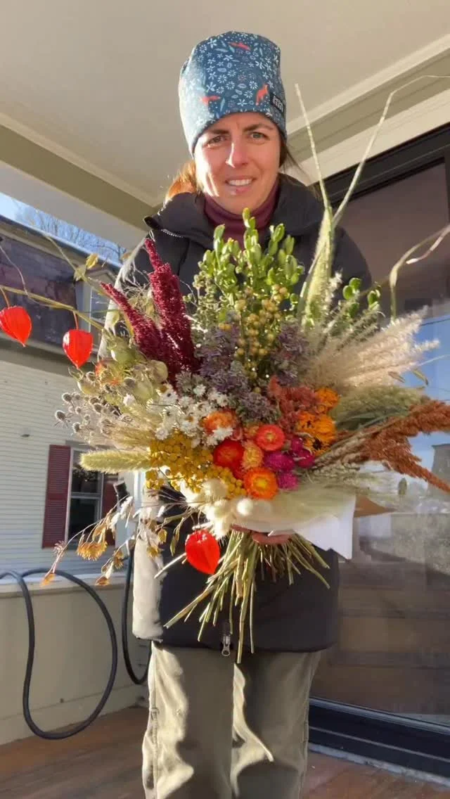 During the summer, Jenny’s fresh bouquets and arrangements are available for special orders, deliveries, weddings and events. In the fall and winter, her vibrant dried flowers can be special ordered, purchased at the Roots Farm Market and select holiday craft fairs. Note: Jenny has a private home studio, no storefront location. Please contact her to order flowers for delivery or pick-up at the studio.
