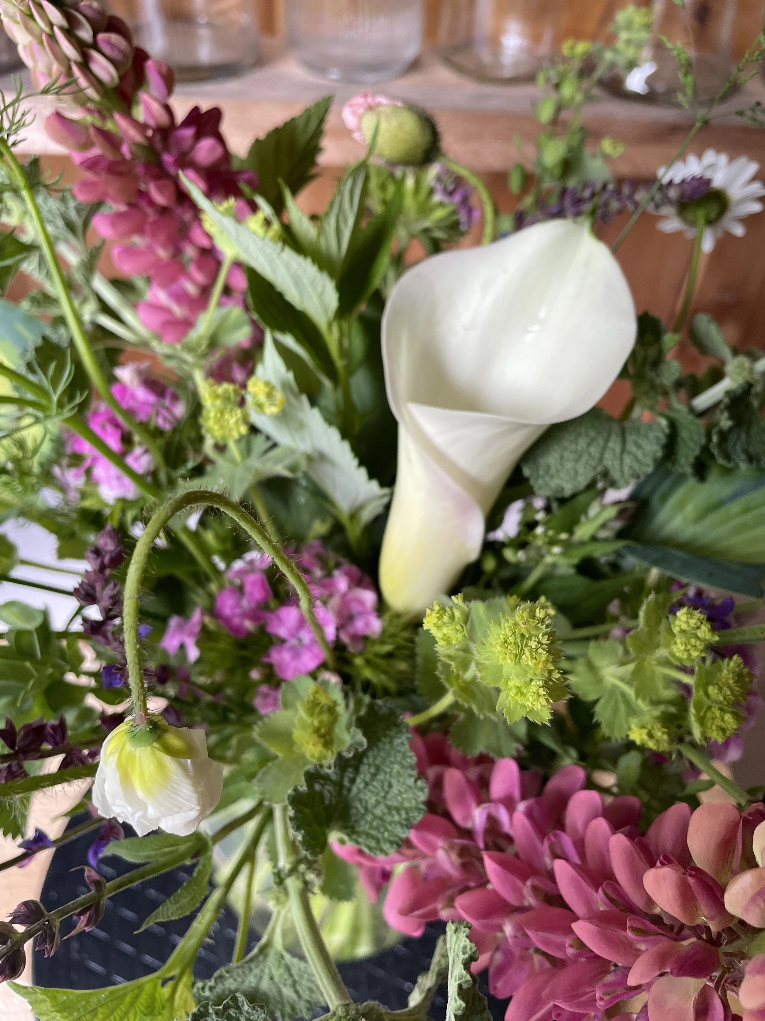 NO STOREFRONT LOCATION! Jenny has a private home design studio and uses 100% seasonal farm-grown blooms. If you’re looking for something conventional—like a dozen roses for Valentine’s Day or potted plants—contact The Pink Shutter or Botanica in Montpelier.